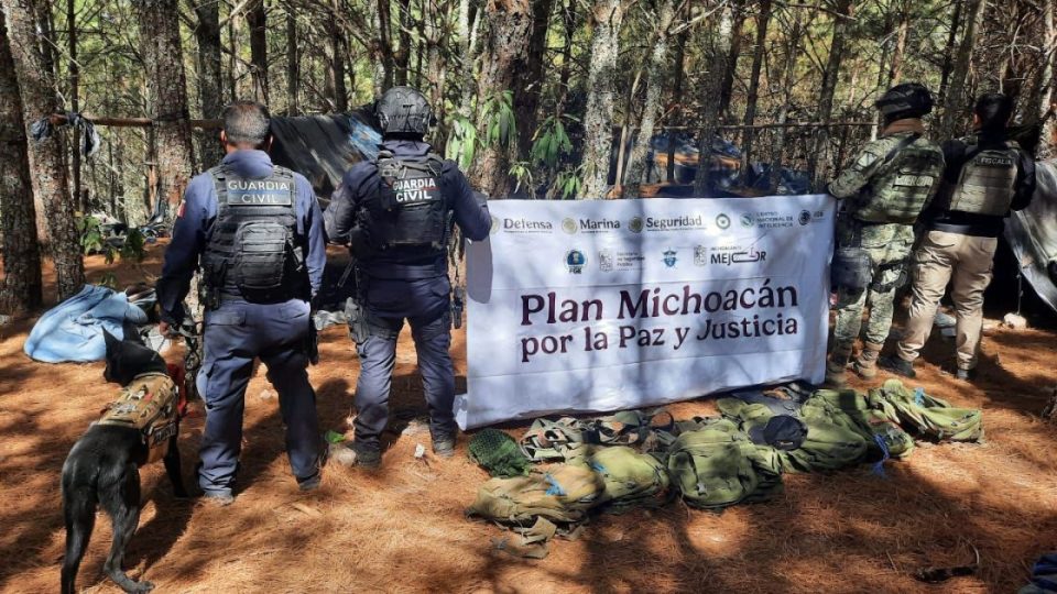 *Queréndaro, Michoacán, 28 de febrero de 2026.-* Como parte de las estrategias del Plan Michoacán por la Paz y la Justicia, elementos de la Secretaría de Seguridad Pública (SSP), en coordinación con la Secretaría de la Defensa Nacional (Defensa) y la Fiscalía General del Estado (FGE), localizaron y desmantelaron un asentamiento provisional presuntamente utilizado para actividades ilícitas en una zona serrana de este municipio.