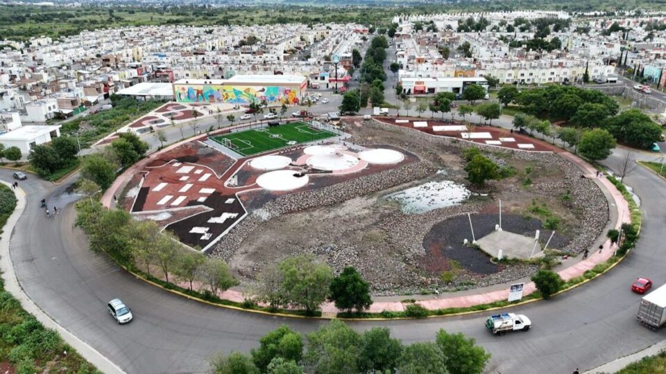 “La macroglorieta tendrá de todo: cancha de futbol 7, juegos infantiles, gimnasio al aire libre y además mesas de ajedrez, para fomentar actividades sanas y recreativas en Villas del Pedregal”, señaló la funcionaria estatal.